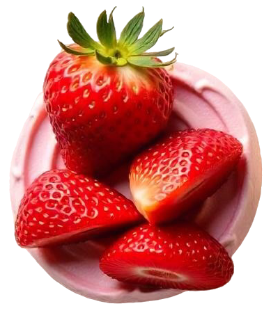 Juicy strawberry scoops topped with a swirl of sweet delight.